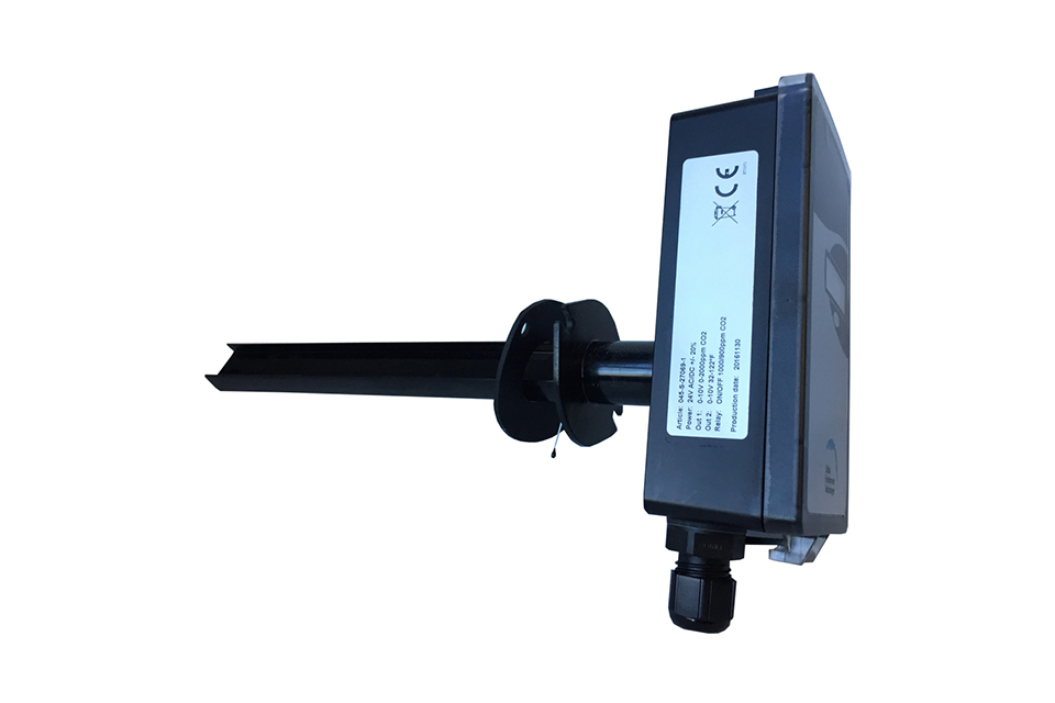 Infrared Carbon dioxide Modbus® gas detector with a 0 – 2,000 ppm measurement range housed in a water tight, duct style enclosure for mounting in ventilation ducts